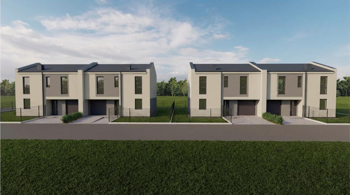 Nasze nowe osiedle to budynki jednorodzinne w zabudowie bliźniaczej z garażem oraz ogródkiem.